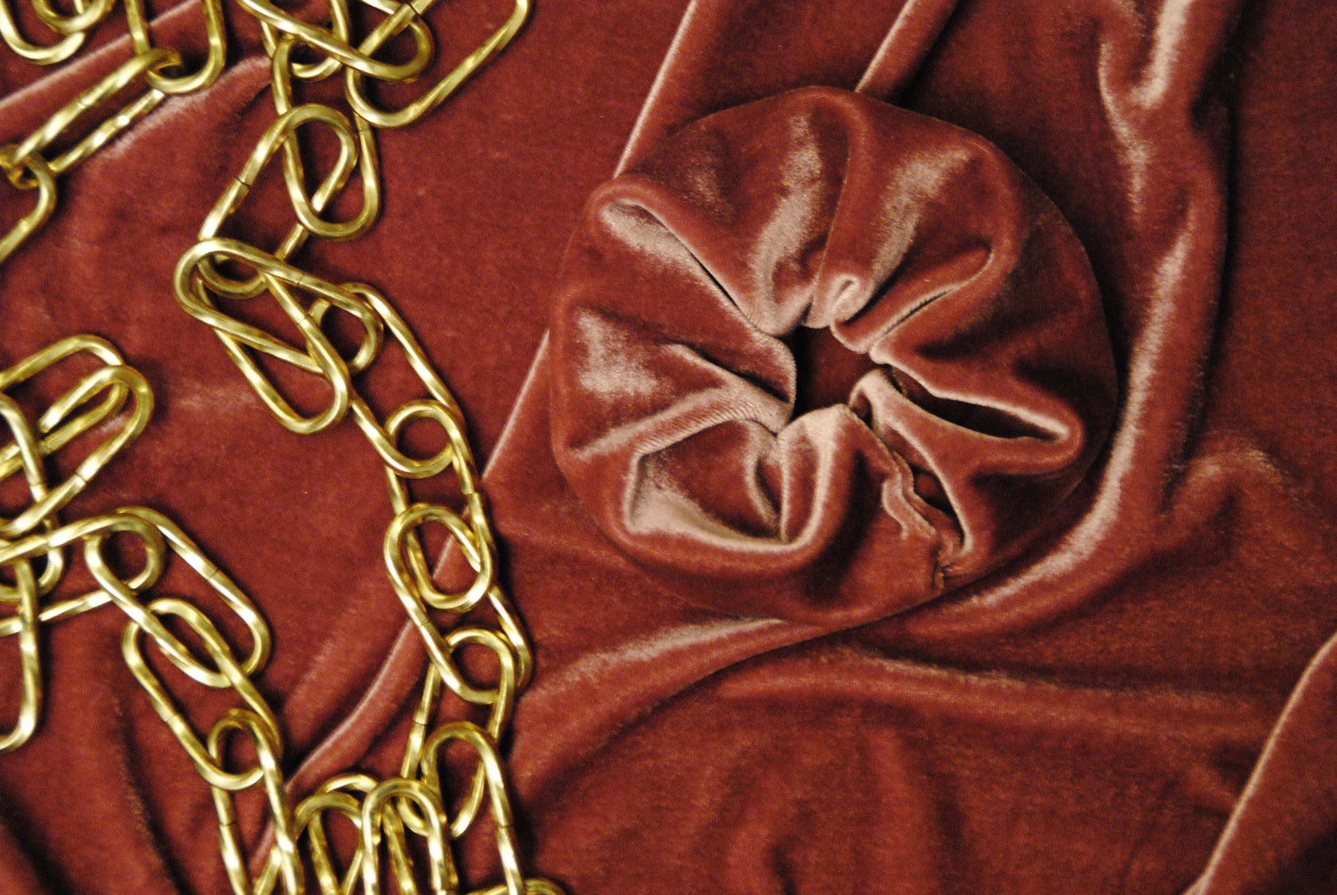 Handgemaakte, velvet scrunchie in oud roze.