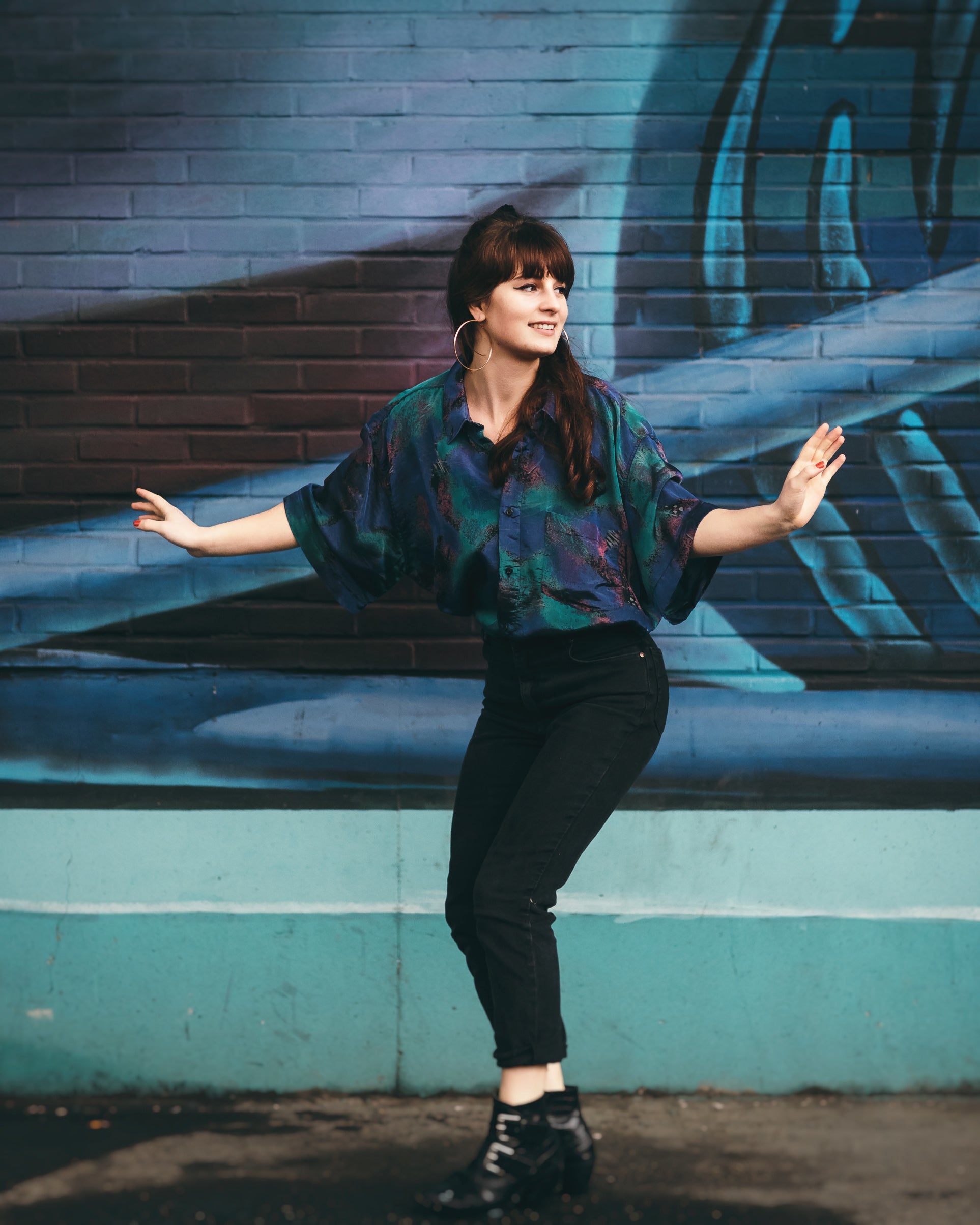 This shirt is truely a work of art on its own. Beautiful, high quality vintage shirt in dominant green and blue.